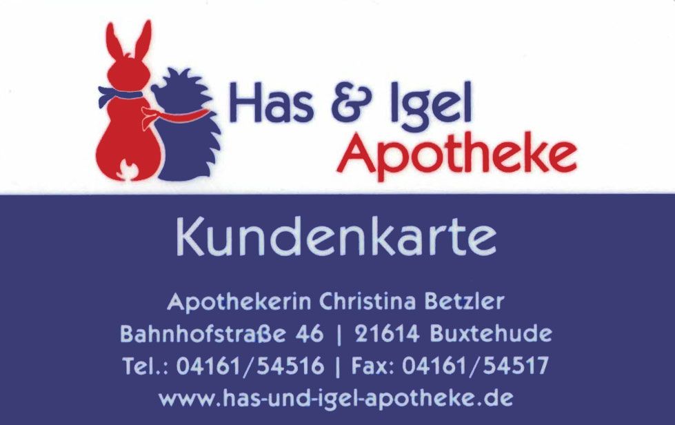 Unser engagiertes Team der Has und Igel Apotheke in Buxtehude steht Ihnen mit Rat und Tat zur Seite. Wir beantworten gerne Ihre Fragen rund um das Thema Gesundheit und Wohlbefinden und zeigen Ihnen mögliche Wege als auch alternative Behandlungsmöglichkeiten auf.